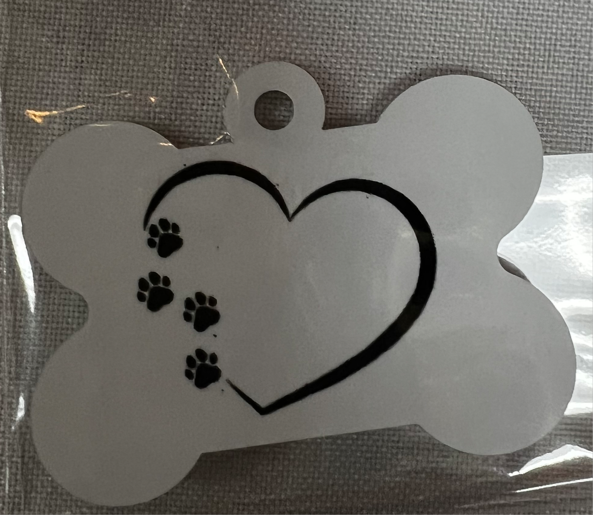 Sublimation Dog Tags. Can be personalized with name loved pet and personal information on the back of tag in case loved one is lost.